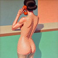 Over ‘Retro vrouw met oranje telefoon’ van Jan Keteleer