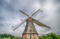 Foto-opname van de zeskante korenmolen in Waardenburg, gemeente Neerijnen, provincie Gelderland. De molen uit 1780 is gelegen langs de Waalbandijk.