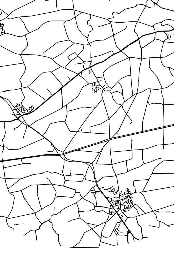 Zwart-witte landkaart, stratenplan of plattegrond van Reutum. Reutum is gelegen in Twente, in de gemeente Tubbergen, provincie Overijssel. Op de stadskaart zijn alle openbare wegen in Reutum opgenomen. Verder is de kaart voorzien van de coördinaten van het centrum van Reutum.
