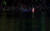 De Reuzenotter heeft zijn domein in de meertjes van de Amazone. Met hun grote groepen zijn ze heer en meester in het water. In het laatste licht kwam ik deze groep otters tegen in de Peruaanse Amazone waarbij de laatste zonnestralen precies op een otter vielen. De otter liet even zien dat er niet met hem te spotten valt! Voor meer otters ga naar: http://naturebylennart.com/mammals-blog/lobo-del-rio/#more-1216.