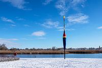 Reuzen poseren bij de Warnow in de Hanzestad Rostock in de winter