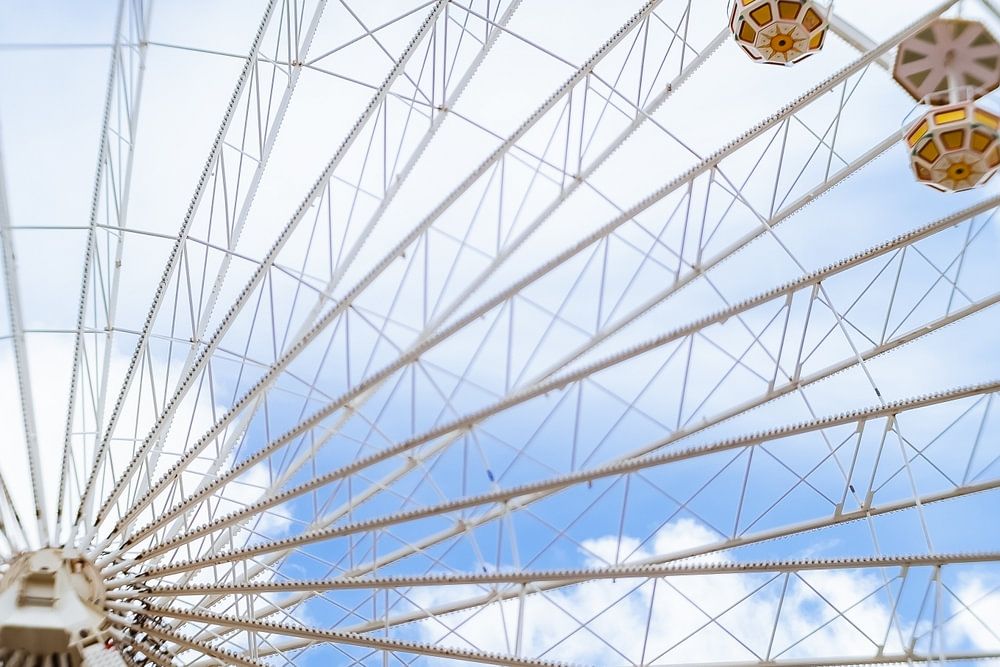 Reuzenrad van Honfleur op een mooie zomerse dag. Foto gemaakt met een lens met een speciaal effect.