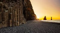 Reynisdrangar kliffen op zwart zandstrand, Vik, IJsland