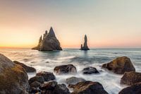 Reynisdrangar kliffen op zwart zandstrand, Vik, IJsland