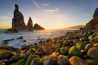 Een zonsopgang op het strand van Ribeira da Janela op Madeira.