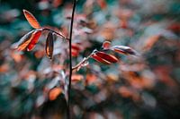 Jonge blaadjes van een struik. De foto is gemaakt met een speciale lens zodat er een smeuïg beeld gecreëerd wordt.