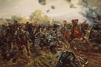 Kapitein Francis Grenfell leidde de 9th (Queen's Royal) Lancers in de actie in Audregnies, op 24 augustus 1914 tijdens de slag om Bergen, tegen een groot aantal Duitse infanterie die oprukten om de 5e divisie te omsingelen. Deze actie werd later vergeleken met de Charge of the Light Brigade omdat het grote moed toonde, maar weinig tot stand bracht. Later op de dag hielpen Grenfell en zijn mannen Britse kanonnen weg te slepen die dreigden te worden gevangengenomen. In dit schilderij lijkt de kunstenaar de twee gebeurtenissen te hebben gecombineerd.