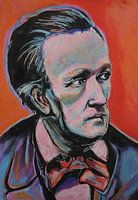 Portret van de legendarische Duitse componist Richard Wagner. (1813-1883). Het origineel is gemaakt met pastelkrijt en inkt op gekleurd kartonpapier, gebaseerd op een zwart-wit foto.