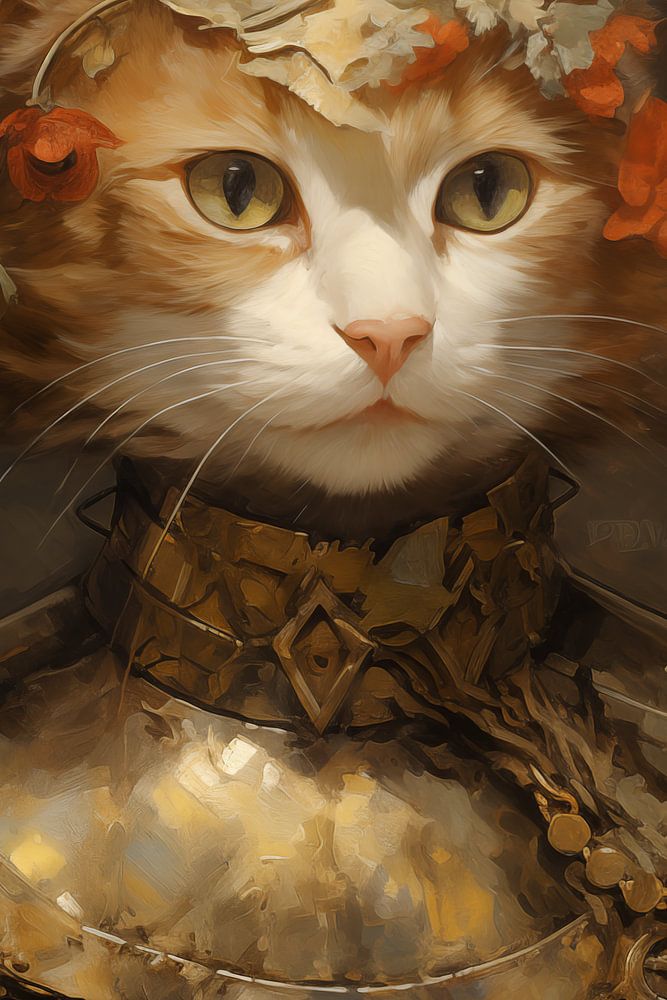 In het hart van een mysterieus, vergeten koninkrijk, waar katachtige adel regeert, staat Ridderlijke Rosalina fier en onverschrokken. Als een ongeëvenaarde wachter van het Geheime Hof, draagt Rosalina een harnas van puur goud, versierd met emblematische ornamenten die haar koninklijke afkomst en toewijding aan de troon belichamen.