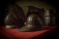 Helmen uit de middeleeuwen in sfeervol licht. Doet denken aan Rembrandt...