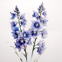 Prachtige, stijlvolle aquarel van bloesem in paarse waterverf tinten.