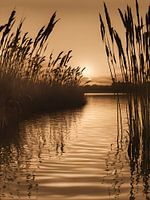 Laat je meevoeren door de serene schoonheid van wuivend pampasgras aan het water, badend in de warme gloed van de ondergaande zon. De gouden stralen vangen de zachte pluimen, terwijl het kabbelende water de kleuren van de avond weerspiegelt. Een moment van pure rust en natuurlijke elegantie, perfect vastgelegd in deze betoverende foto. Breng de magie van de schemering in huis en laat je omarmen door de sfeer van eindeloze vrijheid. Ook mooi als behang.