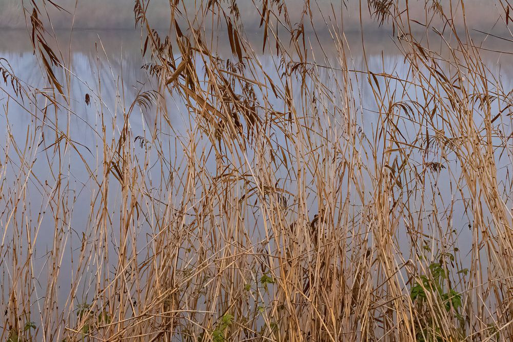 Wanneer het in de polder een beetje mistig is, is het gelijk een beetje mysterieus. Het riet is een beetje vochtig en dat geeft een bijzonder beeld.
