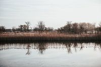 Riet - Phragmites australis - Winterlandschap gefotografeerd in nationaal park de Amsterdamse Waterleidingduinen. Een duingebied met veel riet en water tussen Noordwijk en Zandvoort. Deze foto is gemaakt bij zonsopgang.
