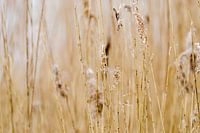 Abstracte foto van een rietkraag in Nederland, waarbij de rietpluimen van het geelbruine riet mooi zichtbaar zijn.