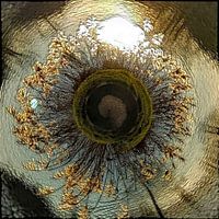 Deze afbeelding is ontstaan door een draaiende bewerking toe te passen op een foto die ik maakte van het riet waar de zon doorheen scheen.