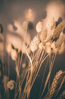 Een closeup van gedroogd rietgras in warme kleuren zoals beige en bruin