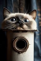 Ontketen de charme van het surrealisme met Pipe Cat: The Watchful Guardian, een uniek kunstwerk dat nieuwsgierigheid combineert met creativiteit. Dit katachtige meesterwerk bestaat uit een Siamese kat met brede ogen die naadloos opgaat in een industriële pijp, waardoor de illusie ontstaat van een mechanisch-dierlijke hybride. Met zijn…