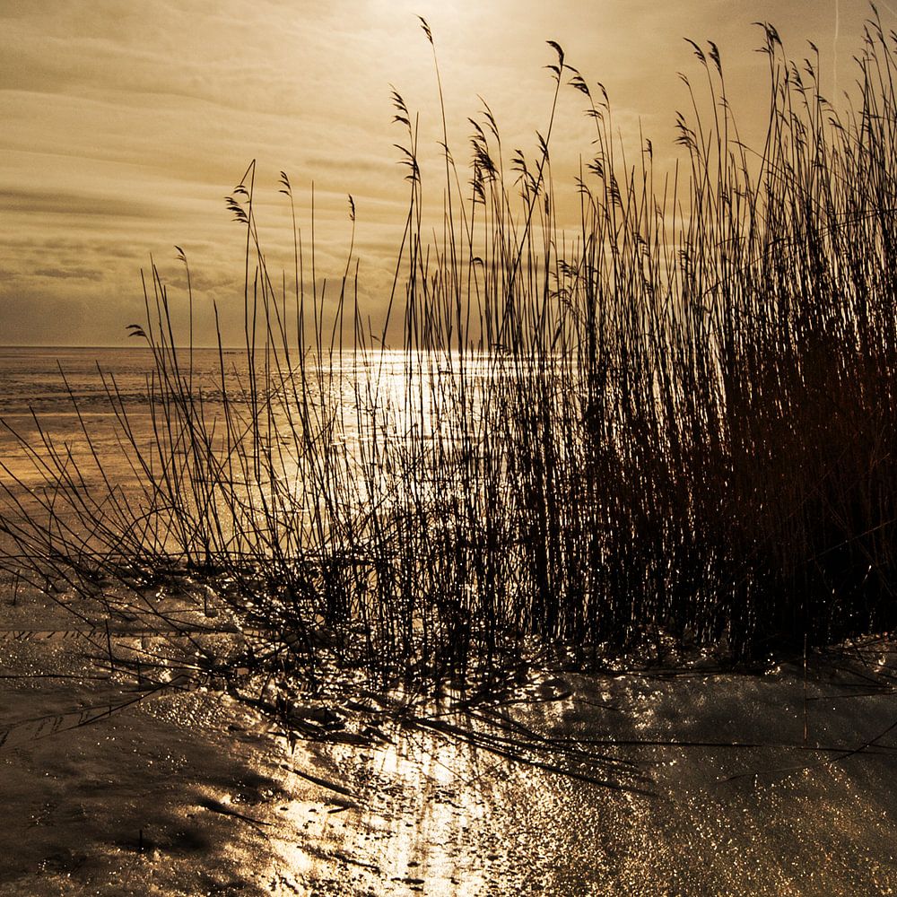 Rietkraag met tegenlicht op het IJsselmeer in de winter van 2012/2013