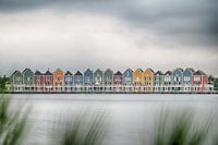 Waarschijnlijk de meest gefotografeerde plek in Houten (provincie Utrecht). De Rietplas met de prachtig gekleurde houten huizen vormen een schitterend decor voor dit stadsgezicht. De lange belichtingstijd zorgt voor een glad wateroppervlak en beweging in de donkere wolkenlucht.