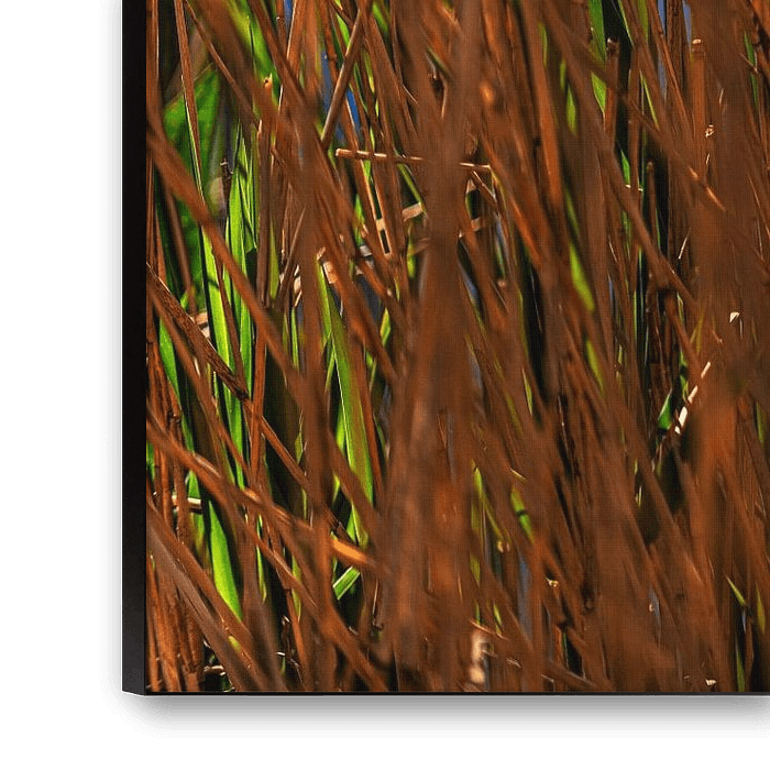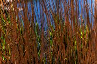 natuurfoto van riet met erachter helmglas beeldvullende foto als pastelkleurige muurdecoratie.