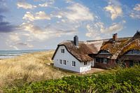 Rietgedekte woning in de duinen, direct aan het strand van de Oostzee
