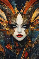 Dit opvallende kunstwerk trekt meteen de aandacht met zijn complexe patronen en rijke kleurenpalet. De surrealistische uitstraling wordt versterkt door de gedetailleerde vormen die harmonieus samensmelten in een portret van mysterie en elegantie. Het ontwerp straalt een unieke energie uit en is ideaal voor liefhebbers van moderne en gedurfde kunst. Met een mix van warme kleuren zoals oranje en goud, in combinatie met contrasterende donkere tinten, voegt het een dynamisch en stijlvol accent toe aan elk interieur. Perfect voor een woonkamer, kantoor of creatieve ruimte, dit kunstwerk transformeert een simpele muur in een boeiende blikvanger.