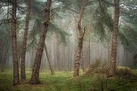 Sommige dagen heb je gewoon ontzettend veel geluk met de omstandigheden en ziet bijna elke foto die je maakt er geweldig uit. Het is moeilijk om het gelukzalige gevoel te onderdrukken en je te concentreren op je werk, want alles is zo prachtig, alsof je in sprookjesland loopt. Deze foto is gemaakt op dezelfde dag als een aantal andere in het Album Pine Forests. De mist trok pas na vele uren op en dat betekende dat ik beeld na beeld kon maken en daarna vertrok met vele mooie foto's op mijn geheugenkaart en een zere arm van het zo lang vasthouden van de camera met de telelens erop. Dit tafereeltje deed me vreemd genoeg aan palmbomen denken. Ik hou van de licht diagonale lijnen in het beeld die dit een dynamischer gevoel geven. Het struikgewas was nog niet opgekomen, want het was het einde van de winter, dus dat hielp enorm om een mooie foto te krijgen met de voeten van de bomen in beeld. Het is een foto die later in het jaar onmogelijk te maken zou zijn, omdat alles er dan heel anders uitziet