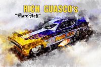 Illustratie van een serie legendarische dragsters en hot rods. Geschilderd met aquarellen op papier.