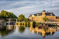 Bij de Rijksmunt worden sinds 1567 de munten van Nederland geslagen. Het gebouw is een rijksmonument. De Abel Tasmanbrug (links) over de Leidse Rijn is 's avonds verlicht. De Muntbrug over de Merwede is rechts nog deels zichtbaar.
