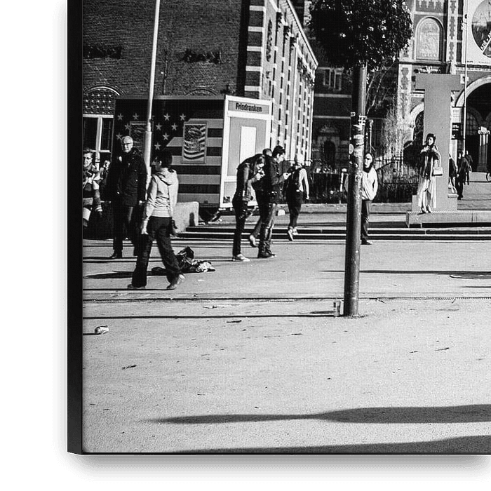 Koop de foto Rijksmuseum Amsterdam zwart-wit van PIX STREET PHOTOGRAPHY op canvas, aluminium dibond, (ingelijste) fotoprint, behang en ArtFrame, op maat geprint in Fine-Art kwaliteit.