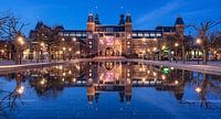 Het Rijksmuseum in Amsterdam, ontworpen door de Nederlandse architect Pierre Cuypers. Waar het normaal druk is rond deze tijd, is het museumplein geheel verlaten vanwege het corona virus