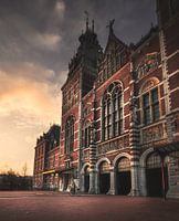 Een prachtige ochtend buiten het Rijksmuseum, het beroemdste museum van Amsterdam. Wat een genot om op de fiets te kunnen rijden en zo'n mooie architectuur te kunnen zien.