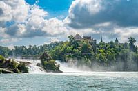 Rijnwaterval waterval in Schaffhausen, Zwitserland weids panorama. De Rheinfall in de Rijn is de krachtigste waterval van Europa.