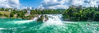 Rijnwaterval in Schaffhausen, Zwitserland van bovenaf gezien. De Rheinfall in de rivier de Rijn is de krachtigste waterval van Europa.