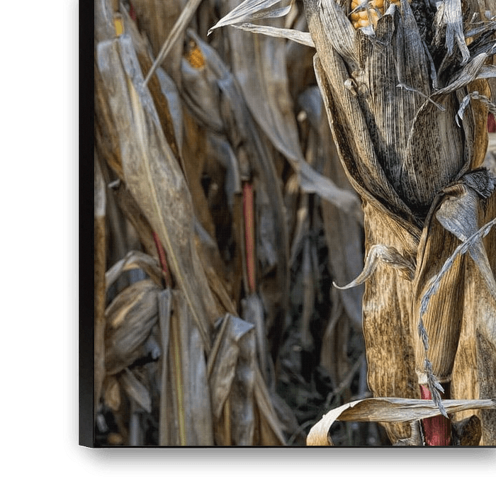 Goudkleurig maïsveld met rijpe maïskolven.