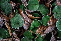 Op de grond valt veel moois te zien. Tijdens een koude nacht met lichte vorst, waren de blaadjes bedenkt met een mooi suikerrandje. Het groen en bruin steekt mooi tegen elkaar af en laat het begin van de winter zien.