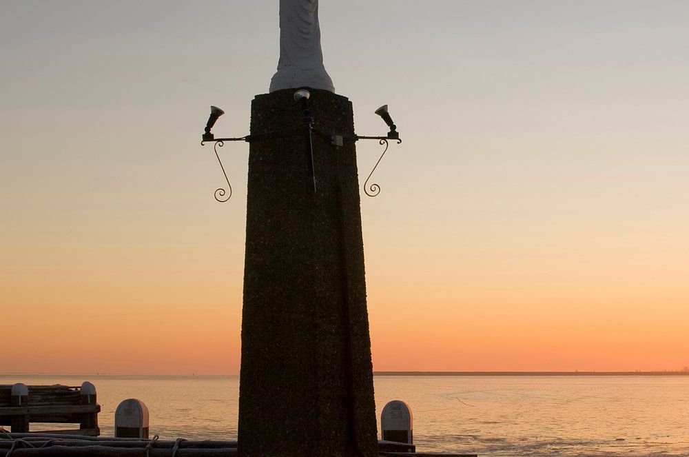 Deze foto is genomen nabij het havengat van de haven van Volendam. Ondanks de opkomende zon bleef de rijp nog lang in stand op de palen en de basaltkeien van de dijk