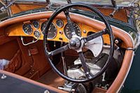 Deelnemer aan de rallye voor klassieke automobielen bij Chateau Neercanne in Maastricht.