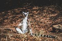 Een ringstaartmaki geniet van de zon in het Isalo Nationaal Park in Madagascar (Madagaskar).