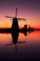 Een fraaie zonsopkomst bij de molens van Kinderdijk.