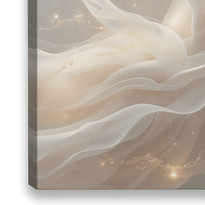 Rising Breath of Spring verbeeldt een moment van bijna onmerkbare beweging — alsof de ruimte zelf langzaam in- en uitademt. Zachte, lichtdoorlatende vormen cirkelen om een open kern en creëren een gevoel van rust, ruimte en innerlijke stilte. Warme crèmetinten worden subtiel doorsneden door fijne, goudkleurige accenten die het licht op…
