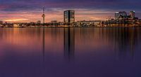 Rotterdam gezien van de Kop van Zuid, met de Euromast en het Erasmus Medisch Centrum. Schitterende zonsondergang en een reflectie.