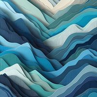 Dit abstracte kunstwerk heeft golvende lagen van blauw en groen, waardoor een gevoel van diepte en beweging ontstaat dat doet denken aan oceaangolven of glooiende heuvels. De verschillende tinten en subtiele texturen binnen elke laag voegen visuele interesse en een dynamische stroom toe aan de compositie. De parallelle lijnen die de…