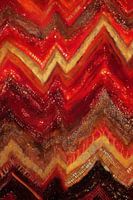 Dit werk toont een ritmisch patroon van zigzag lijnen in vurige tinten van rood, oranje en geel. De intensiteit van de kleuren en de gelaagde texturen brengen een gevoel van warmte en beweging. De golvende lijnen en de variërende tinten geven diepte en dynamiek aan het geheel, waardoor het een boeiende aanvulling is op elke ruimte. Ideaal voor wie op zoek is naar een energieke en visueel aantrekkelijke toevoeging aan hun interieur.