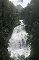 Riva watervallen in het bos van het Zuid-Tiroolse natuurpark Rieserferner-Ahrn. Aurina vallei, Campo Tures. Italië