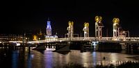 Modern bridge over the river IJssel in the Historical City of Kampen, Overijssel, Netherlands by Night.