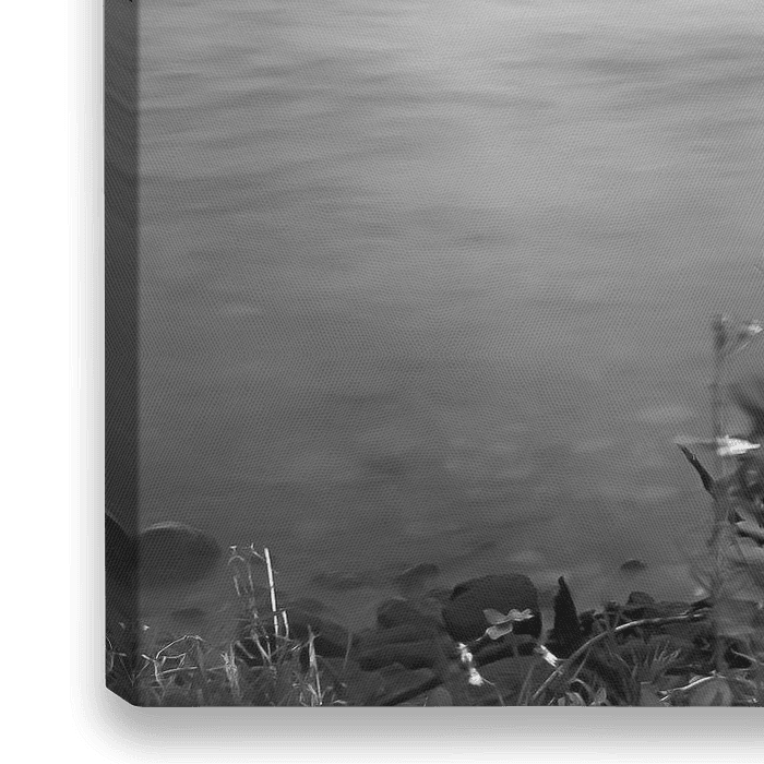 Rustgevende en sfeervolle zwart-wit opname van de rivier De Rijn bij Elst (Utr.) met op een paar meter van de kant een paaltje in het water. De lange belichtingstijd zorgt ervoor dat het woelige water op de foto rustig en kalm overkomt wat sfeer brengt in de foto.