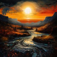 Rivier bij een zonsondergang olieverf schilderij met een prachtige en unieke stijl. Met prachtige kleurtinten en een uniek ontwerp maakt dit tot een stijlvolle fotoprint die prachtig staat in elke ruimte. 100% uniek en origineel!