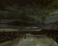 Donkere regenwolken boven de Maas te Maastricht. Zicht naar het Zuiden, richting Luik.